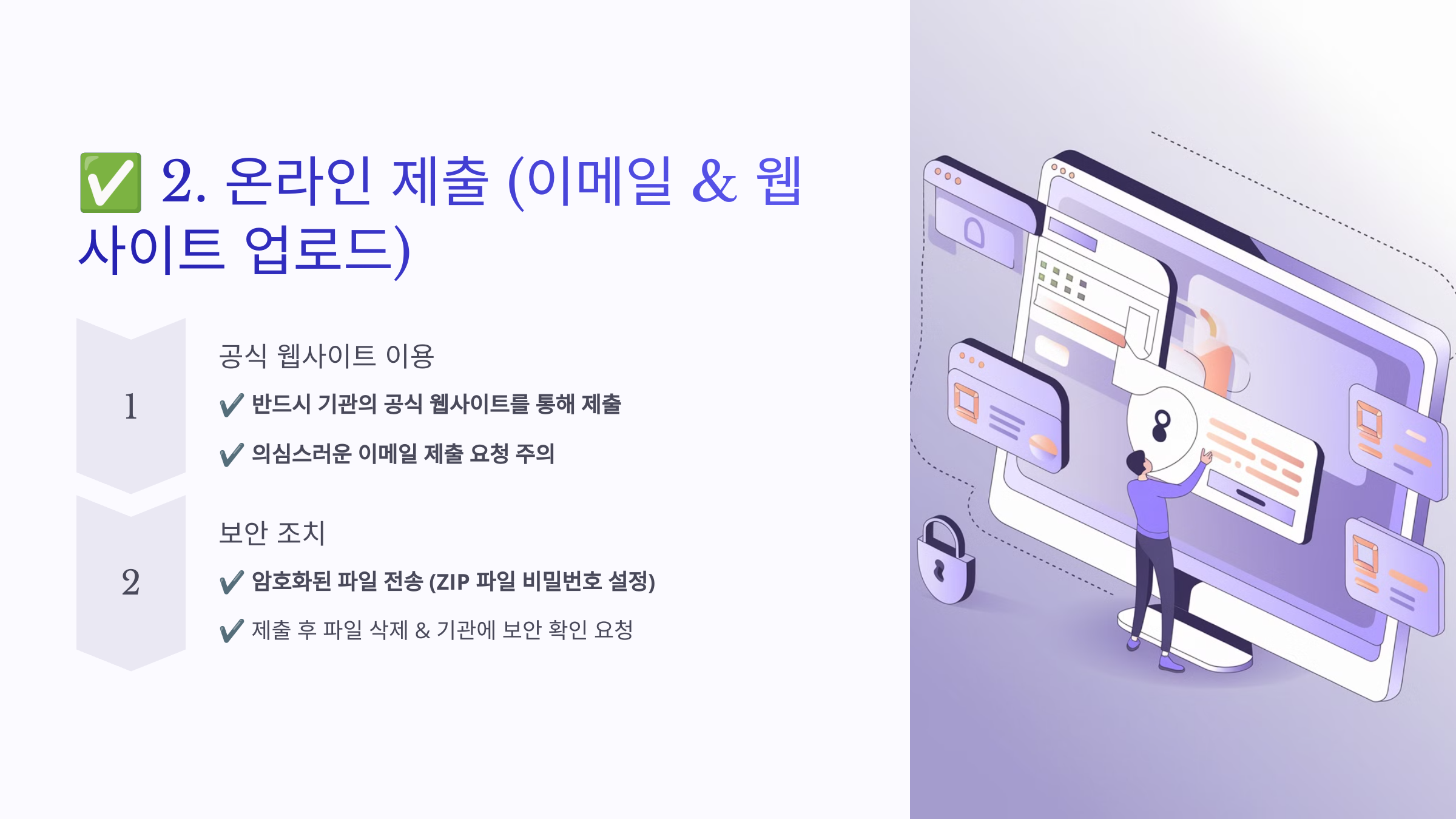 ✅ 신뢰할 수 있는 기관에만 제출 & 보안 조치 확인